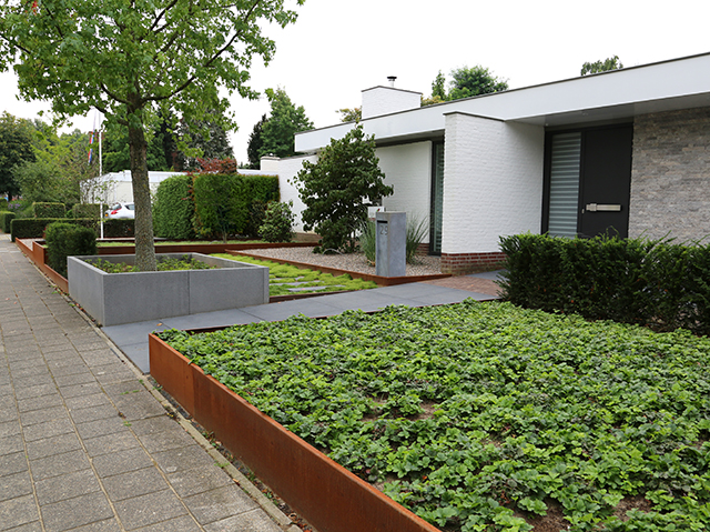 is de strakke ontwerplijn waardoor de tuinen eenvoud en rust uitstralen.